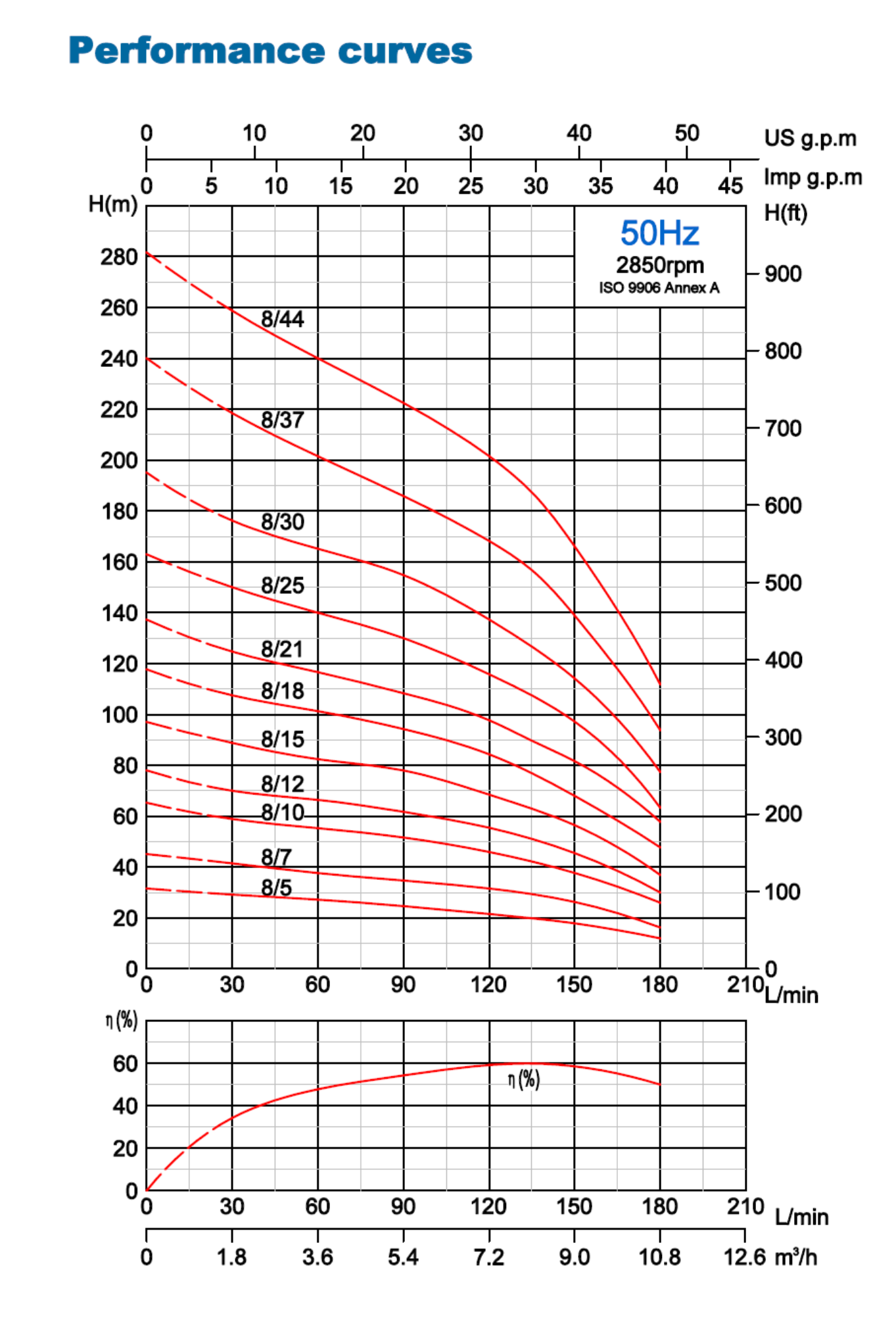 Head: up to 282meters, at 2850rpm, 50Hz